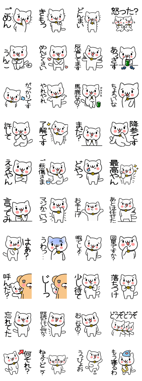 白ネコのあいうえお・・・ってるスタンプ