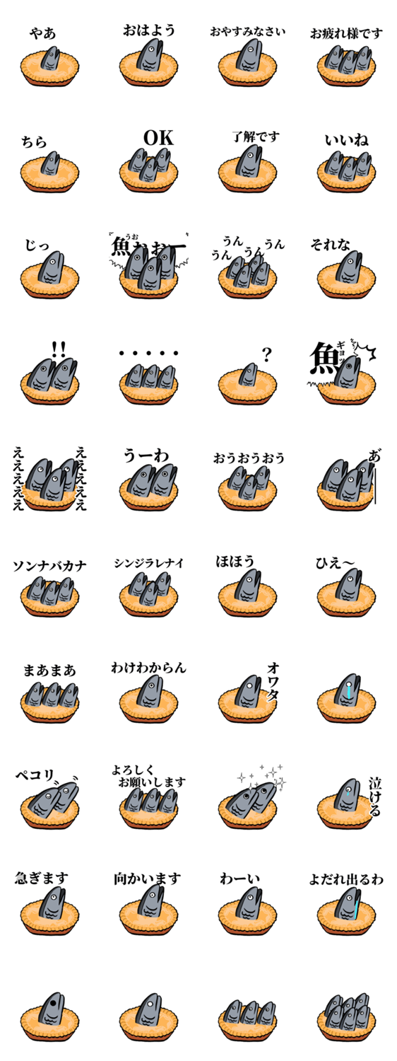 スター魚(うお)ズ。これはスターゲイジーパイの魚たちのスタンプです。シンプルで使いやすいセットになっています。 #食べ物 #魚 #シンプル #使いやすい #毎日