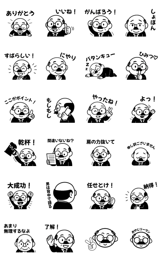 スタンプ説明 哀愁漂うおやじサラリーマンのほのぼのスタンプ