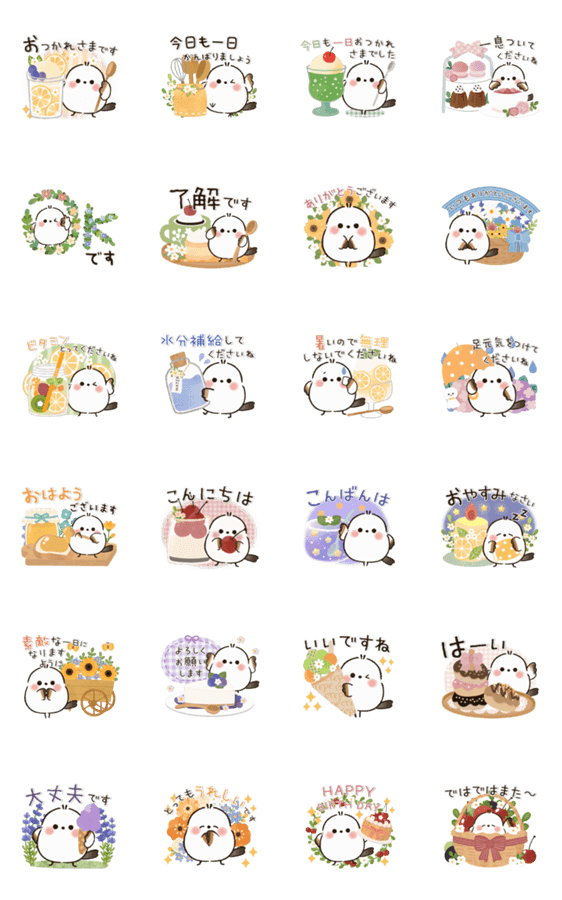ほんわかシマエナガさん&カフェスイーツメニューが可愛い♡丁寧な言葉でメッセージをお届けします。