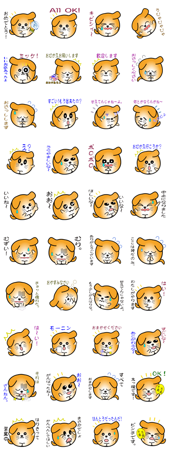 思ったことがすぐに伝わる、丸めのワンコのスタンプ。