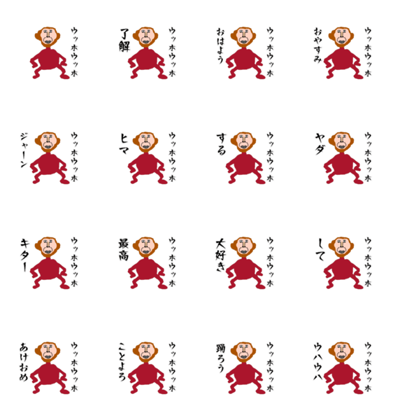 お猿さんがウッホウッホするスタンプ。/サル/さる/猿/動くスタンプ/アニメーションスタンプ/毎日使える/年末年始/正月/あけおめ/ことよろ/シュール