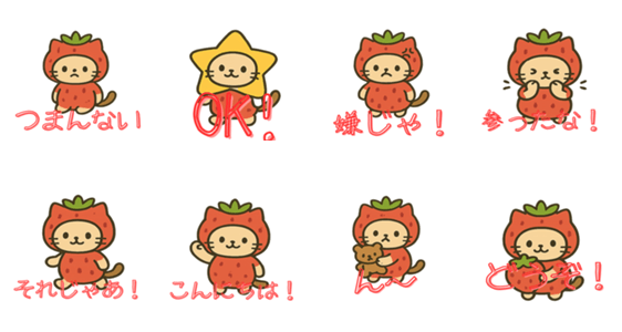 | スタンプ説明 | A sweet and sassy strawberry-cat hybrid brings juicy charm to your chats! Perfect for daily moods and adorable expressions |