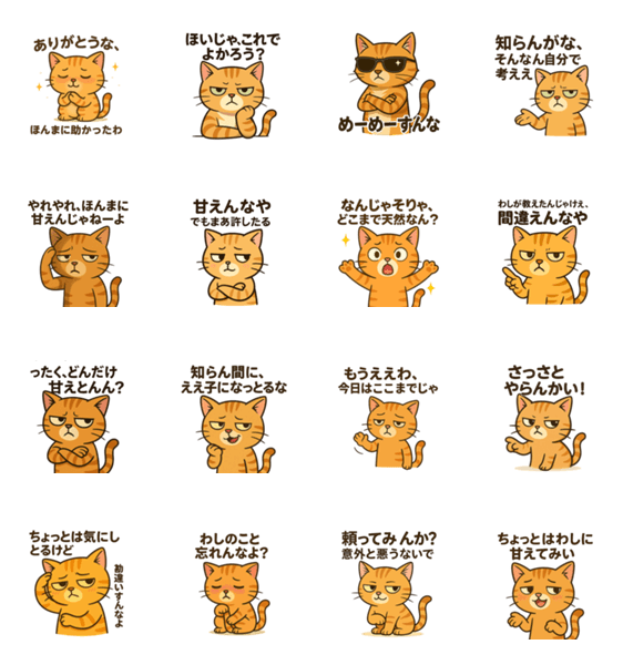 岡山弁で話すツンデレ猫「ちゃぁ様」の応援スタンプ。 ゆるくてやさしい、日常でも使える方言スタンプです。