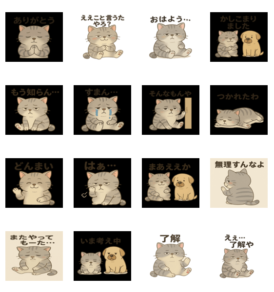 ぶさかわ猫のぶーたろうと、相棒のぶさ犬ごんぺい。 人生2週目を達観気味に生きるぶーたろうの、どこか切なくてクスッと笑える日常スタンプです。