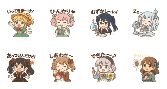 8人の少女たちが、日常のさまざまなワンシーンを彩ります。元気、おやつ、集中、お昼寝…あなたの気持ちにぴったり寄り添うスタンプです