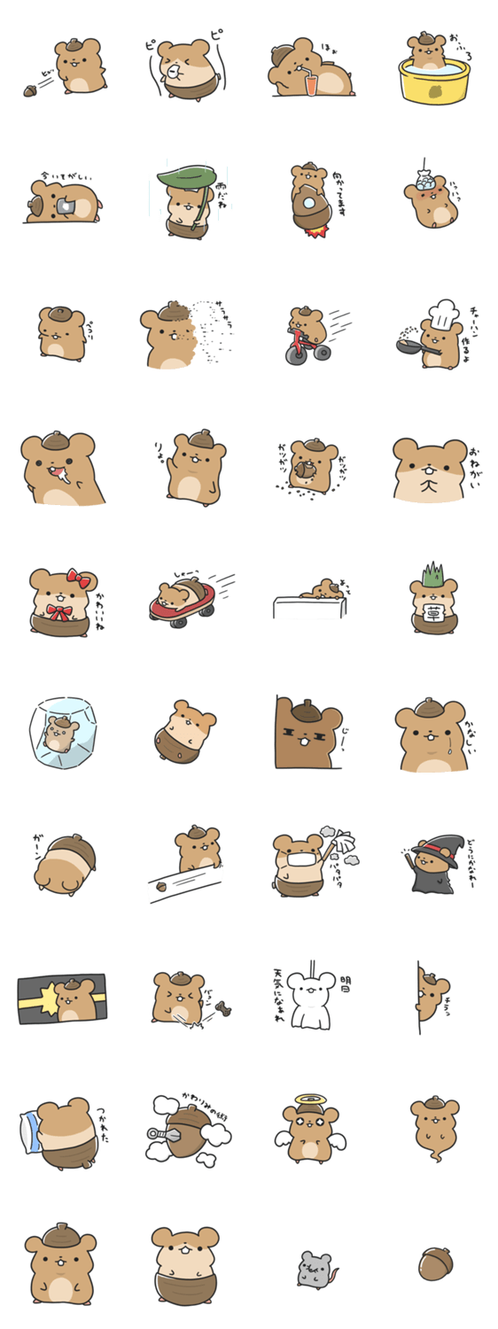 どんぐり帽子ハムスターのぐりハムくんとどんぐりパンツハムスターのどんパンくんのスタンプだよ!