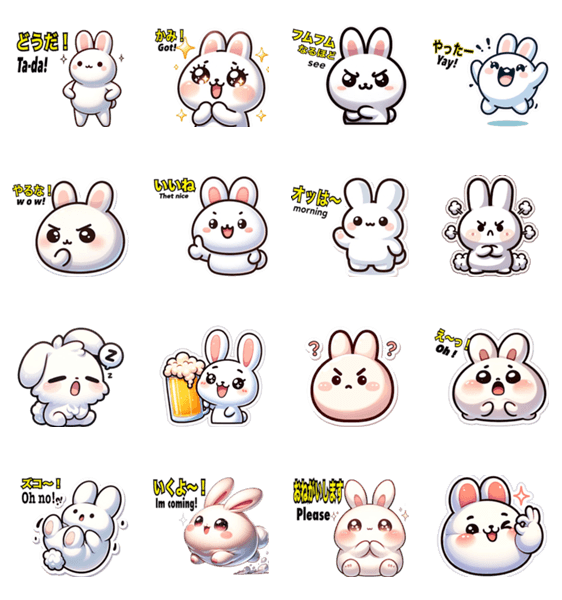 餅うさぎ達の毎日使えば楽しいスタンプ