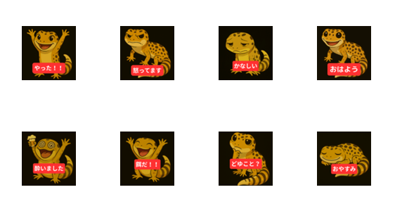 | スタンプ説明 | Express every emotion with this cute leopard gecko! From happy to sleepy to wild, these stickers add charm and fun to your chats. Perfect for gecko lovers! |