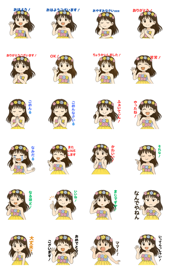 | スタンプ説明 | A cute girl waving hello with a big smile! Perfect for friendly greetings, daily chats, and spreading cheerful vibes in your LINE conversations. |