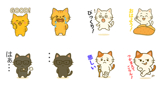 キュートで個性的な表情の猫たち!笑顔からため息まで、遊び心たっぷりの猫たちが、あなたのチャットに楽しさと魅力を添えてくれます。どんな気分にもぴったり!