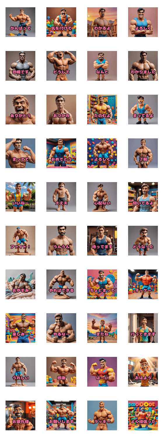 表情豊かなマッチョが、あなたの気持ちを代弁!笑えて使えるムキムキスタンプで、トークを盛り上げよう!