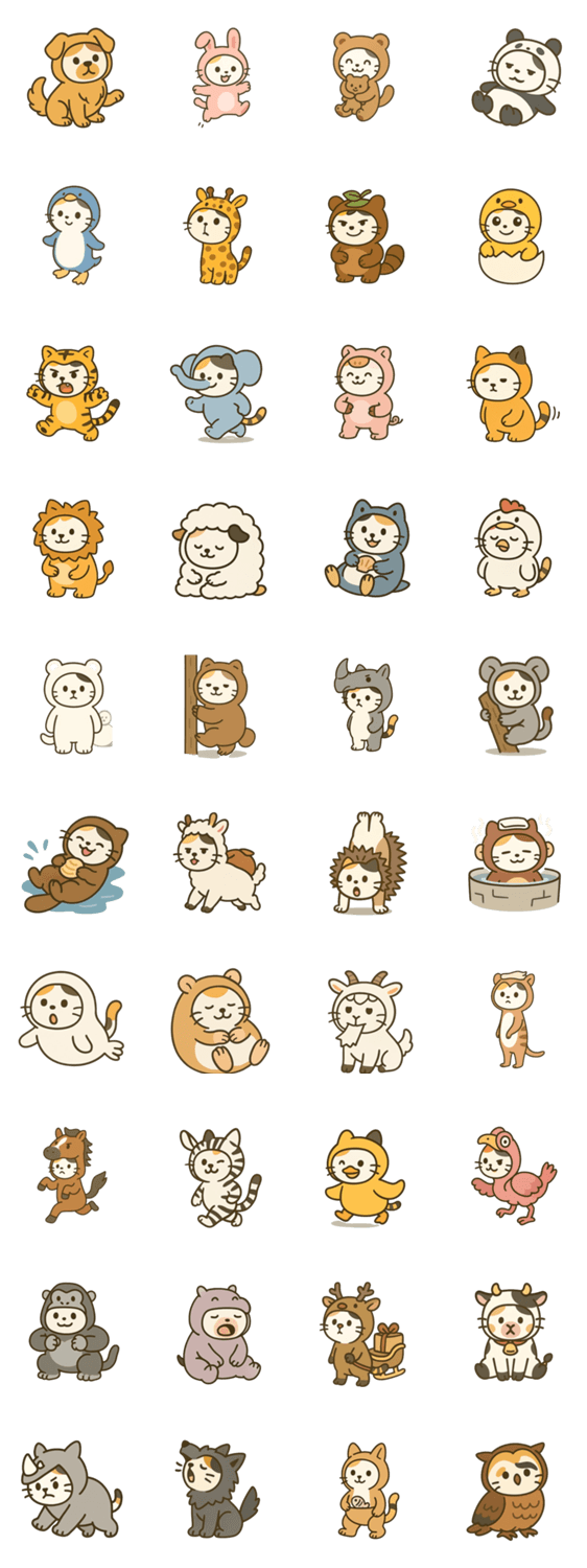 三毛猫「そら」が、いろんな動物のきぐるみに大変身!愛らしくてちょっぴりシュールなポーズで、あなたのトークをポップに盛り上げます。