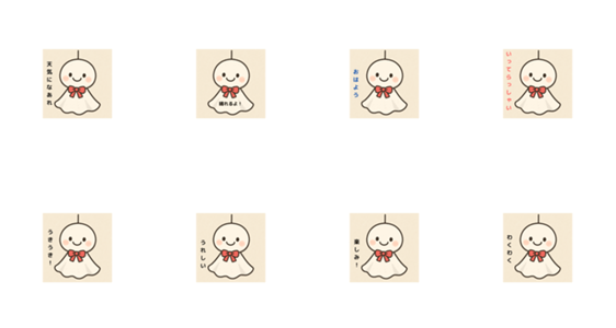 | スタンプ説明 | This cheerful Teru Teru Bozu, with a bright smile and red bow, is a cute Japanese charm believed to bring good weather and sunshine. |