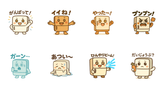 スタンプ説明 冷蔵庫が表情豊かにしゃべってます。