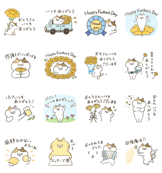大きくて見やすい特別感のあるポップアップスタンプ♡ 父の日に「色々にゃんこ」のかわいいスタンプで感謝を伝えてくださいね♪