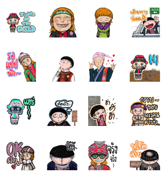 | スタンプ説明 | Created by youth from Pai, this sticker set reflects our cultural diversity in ethnicity, language, and dress united as one heart |