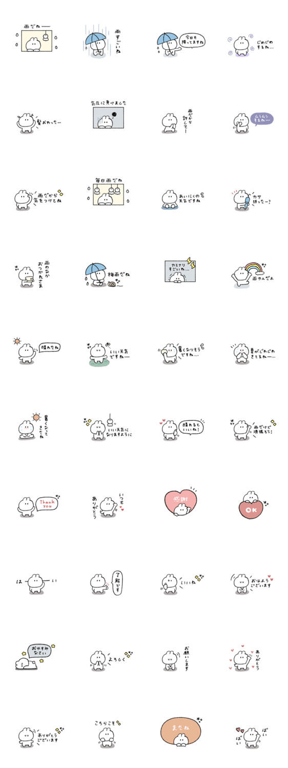 シュール うさぎ スタンプ シンプル 梅雨 ぎのきもち うさ