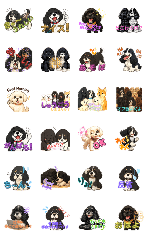 かわいいアメリカンコッカースパニエルのチョコとリントとお友だちの日常のスタンプです
