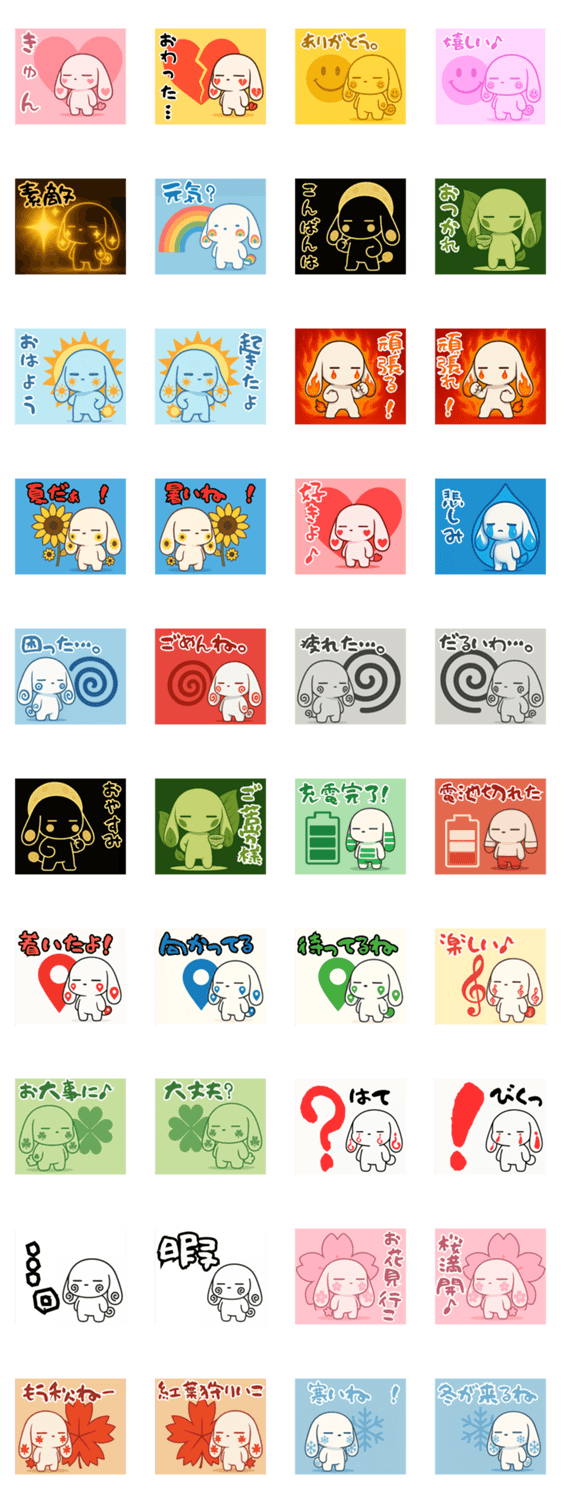 | スタンプ説明 | 「えもあにまる」の「えもうさ」無表情のうさぎさんが感情をマークで表現してコミュニュケーションをとってくれます❤︎ |