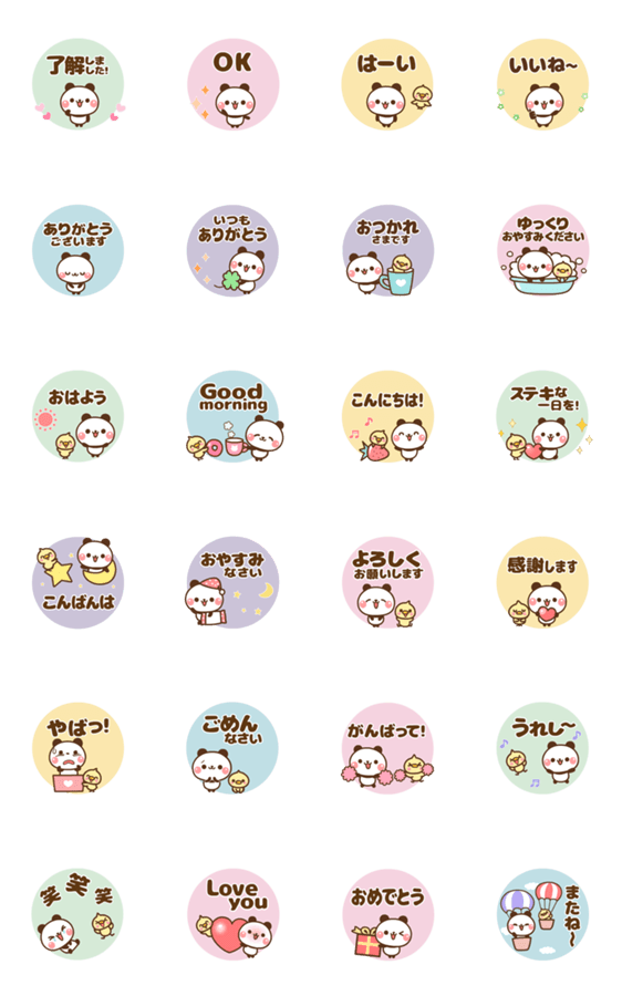 文字が大きくて見やすいパンダの定番スタンプです♪ 毎日よく使う言葉をアニメーションにしました♫
