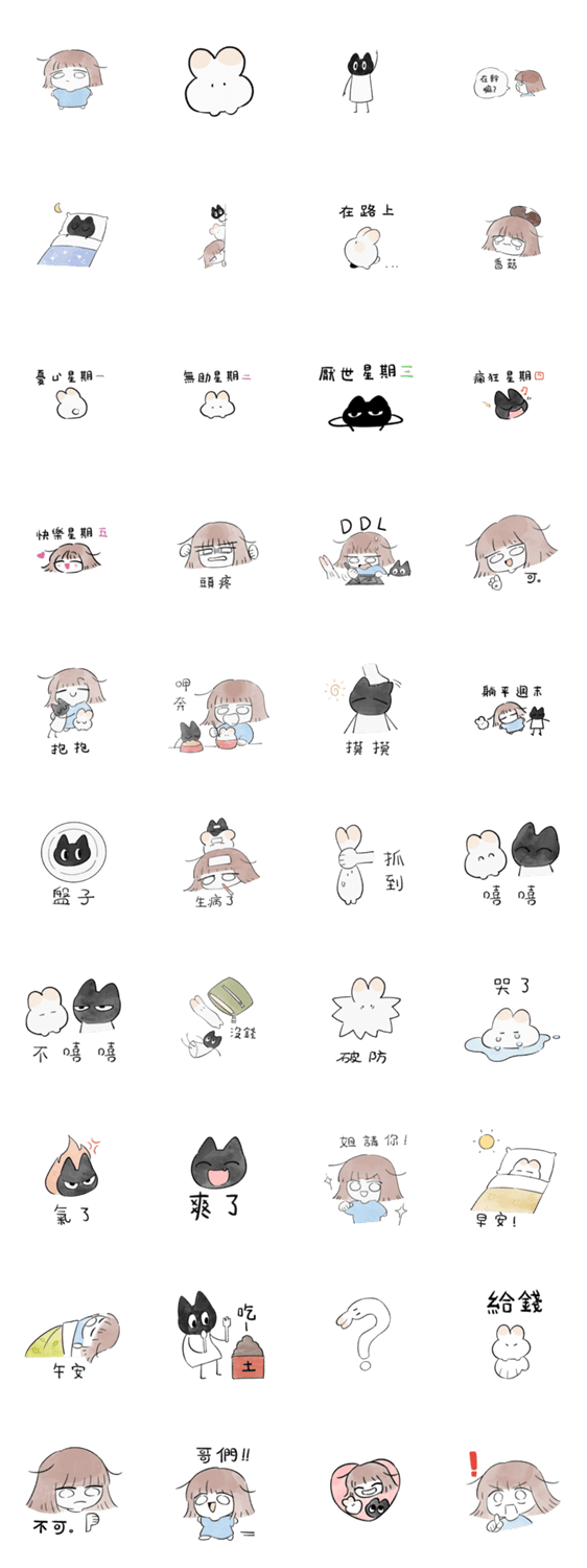 | スタンプ説明 | The daily life of an otaku girl with a cat and a rabbit |