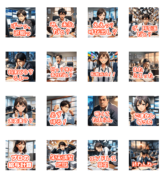 | スタンプ説明 | 人事労務のリアルな“あるある”を詰め込んだ共感&笑いのスタンプ!同僚との会話や心の叫びに。人事担当者のための癒しセット! |