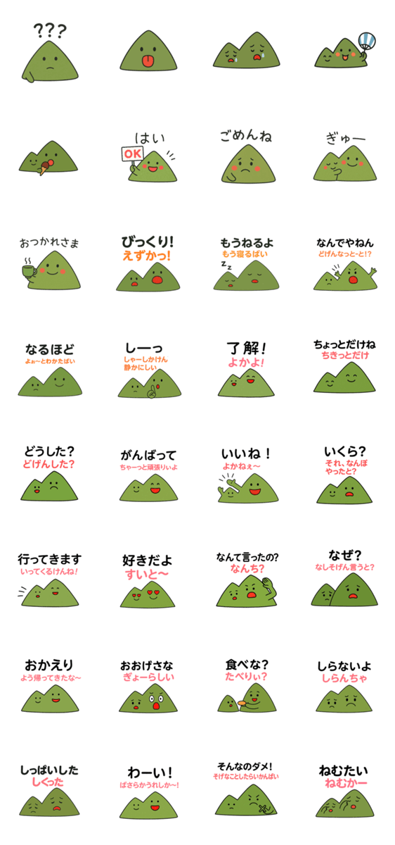 福岡、筑豊のシンボル「ボタ山」を筑豊弁をつかったゆる〜いスタンプにしました。Part2