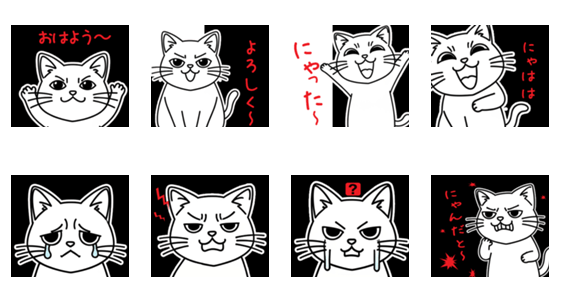 白ネコのあいうえお・・・ってるスタンプ