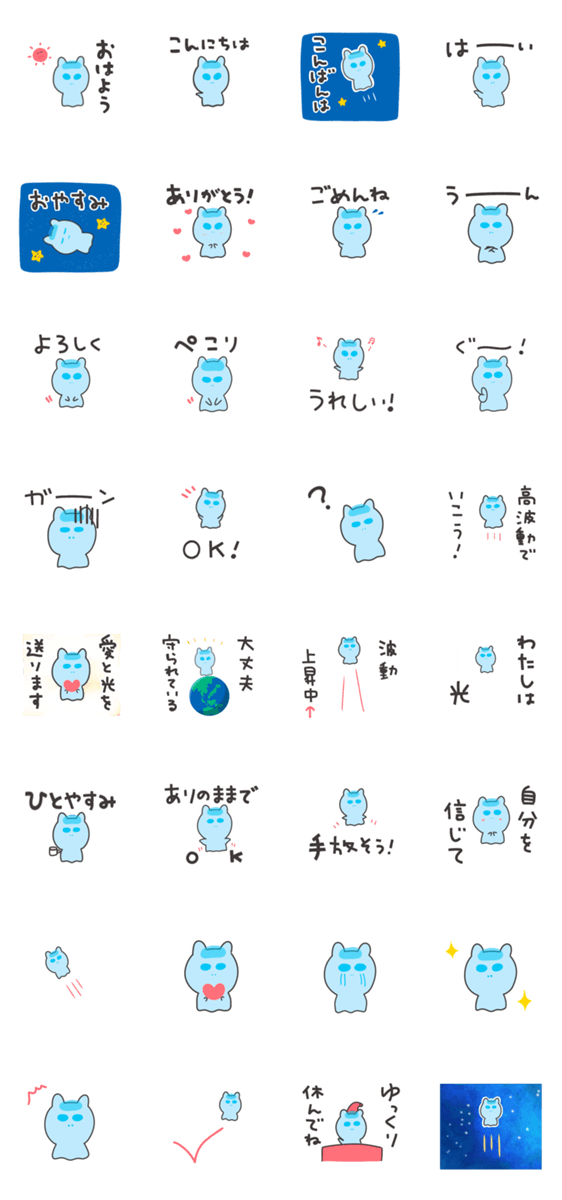 白ネコのあいうえお・・・ってるスタンプ