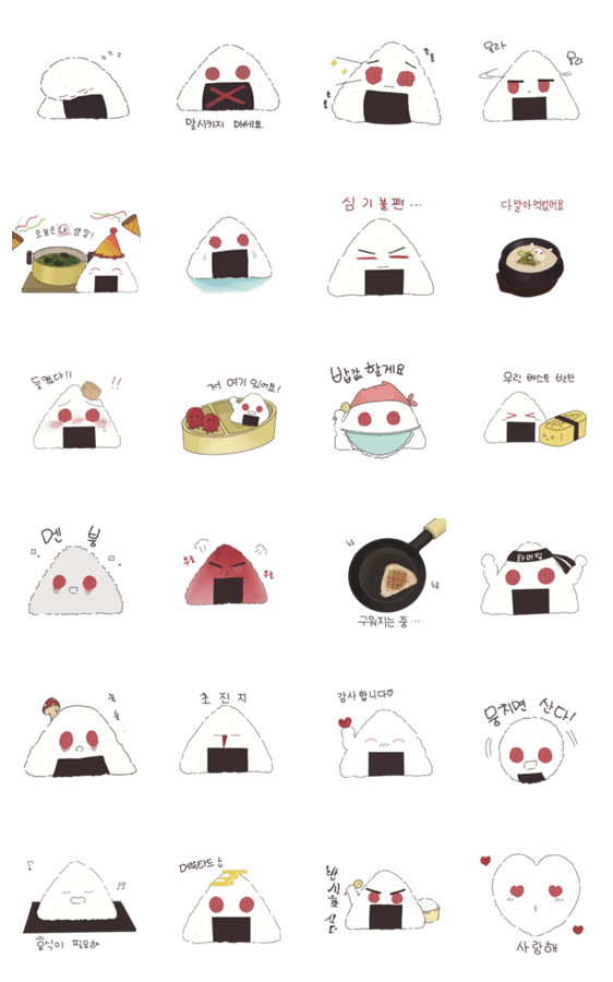 | スタンプ説明 | Because it's rice, the shape changes freely Eyes are pickled green plum, and seaweed is a multi-purpose item that can be transformed into various props. |