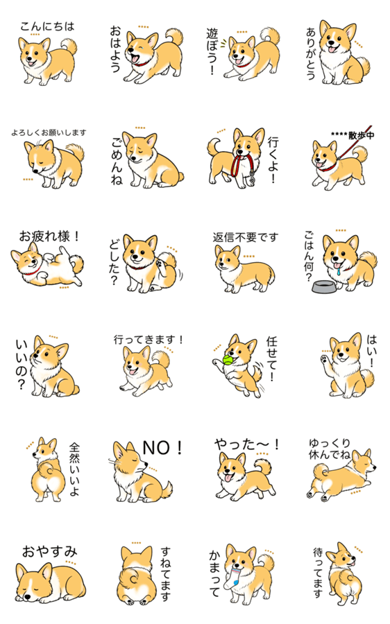 | スタンプ説明 | 愛犬の名前が入れられる!コーギーしっぽありバージョン |