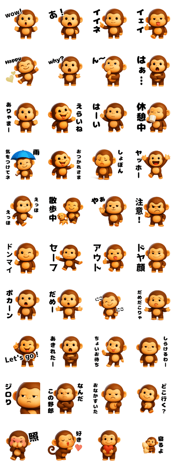 かわいい3Dお猿スタンプ|第3段登場! -LINEスタンプマニア