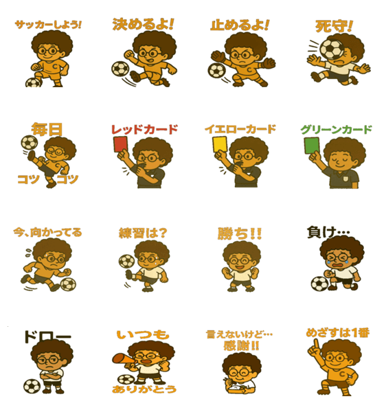 サッカーをやってるあなたも、応援するあなたもどちらも使えるRebornくんの応援スタンプ、サッカー編。勝っても負けても、君は最高だ!