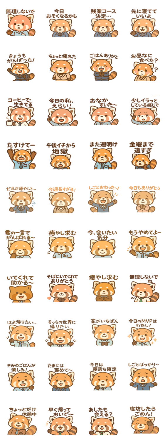 事務職のレッサーパンダ男女が、愛する相方へ送るゆるかわスタンプ。「今日もありがとう」「早く帰ってきてね」など、がんばる毎日の癒やしに。
