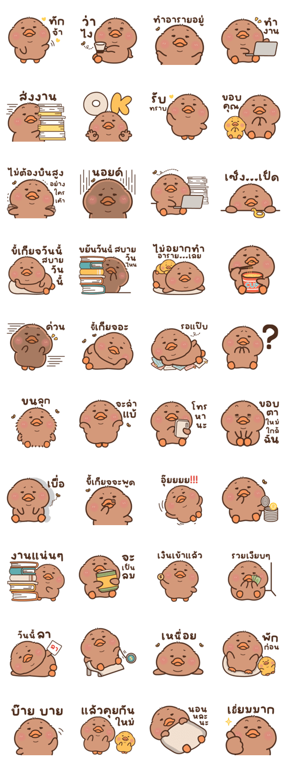 | スタンプ説明 | Chubby brown duck, working words, easy to use words, can be used every day. |