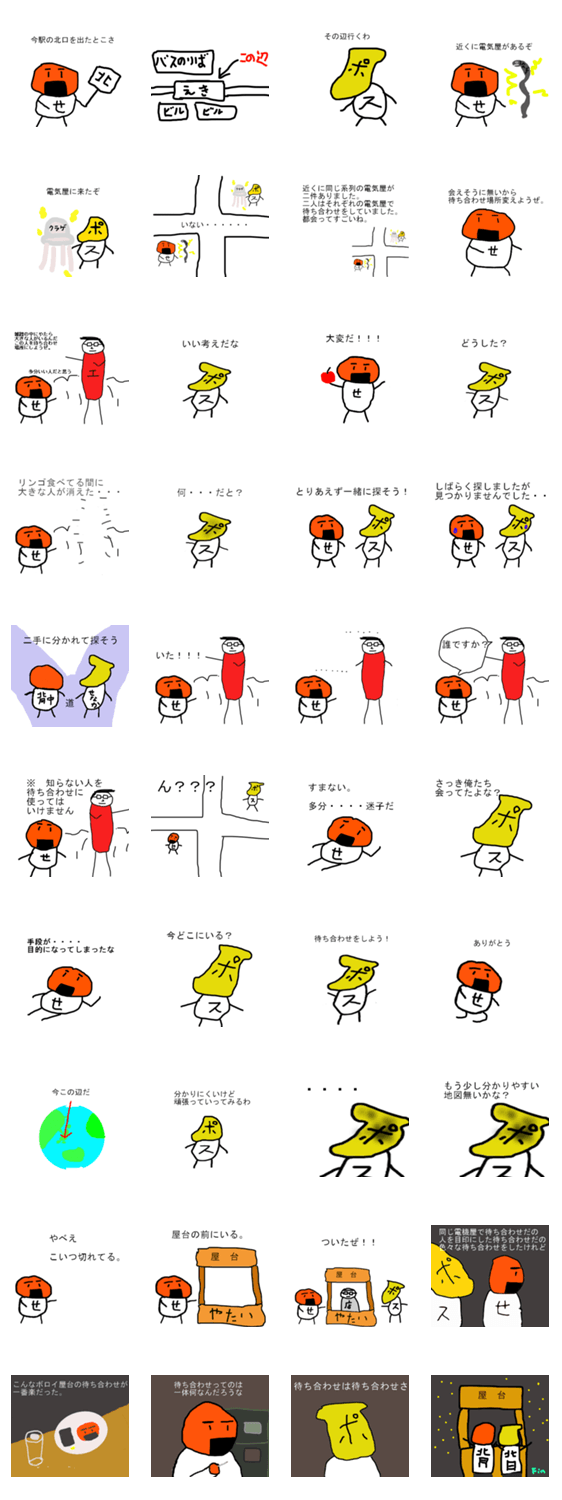 待ち合わせに使えるかもしれないせんべいのラインスタンプです。(尺の都合により駅の北口からの待ち合わせだけになりました・・・)