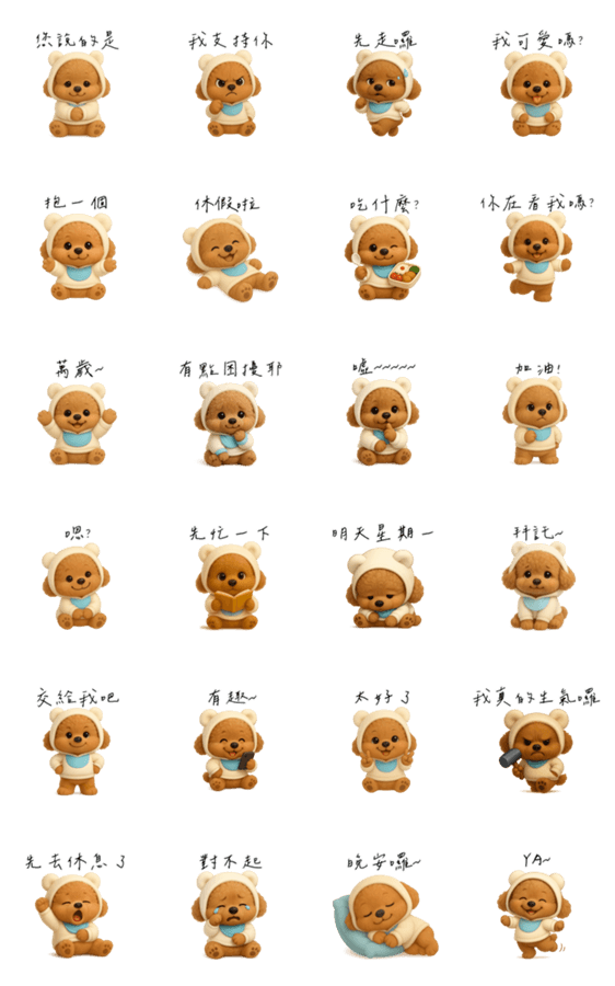 | スタンプ説明 | He doesn't say much, but his sleepy eyes and tiny moves tell you everything. |