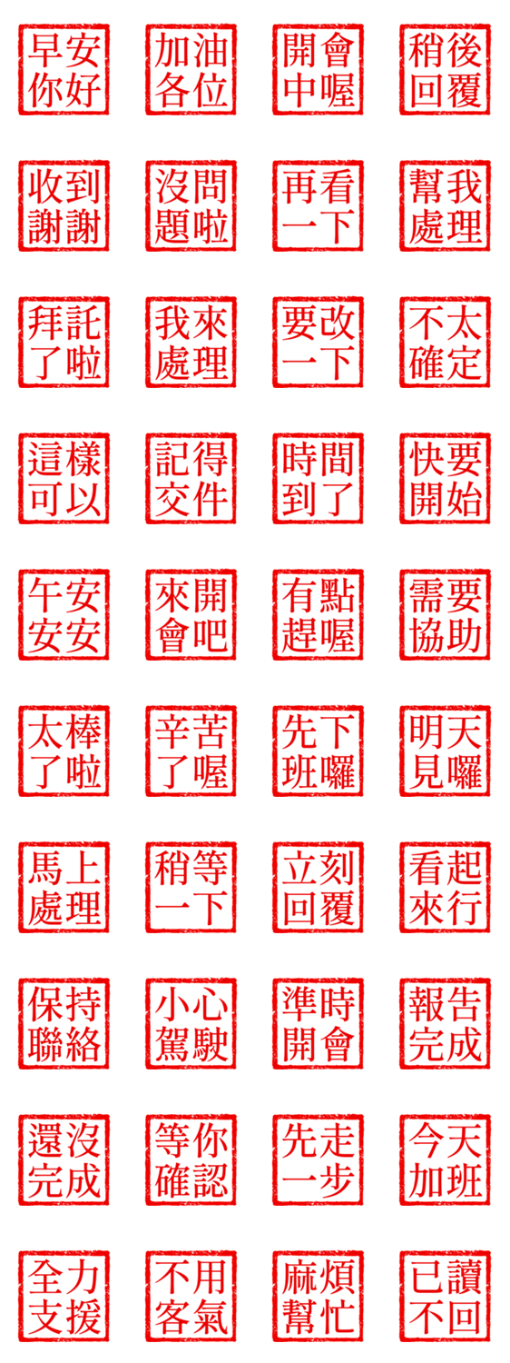 The traditional stamp method is used to convey messages, which is clear and very practical! A must-have text sticker for groups.