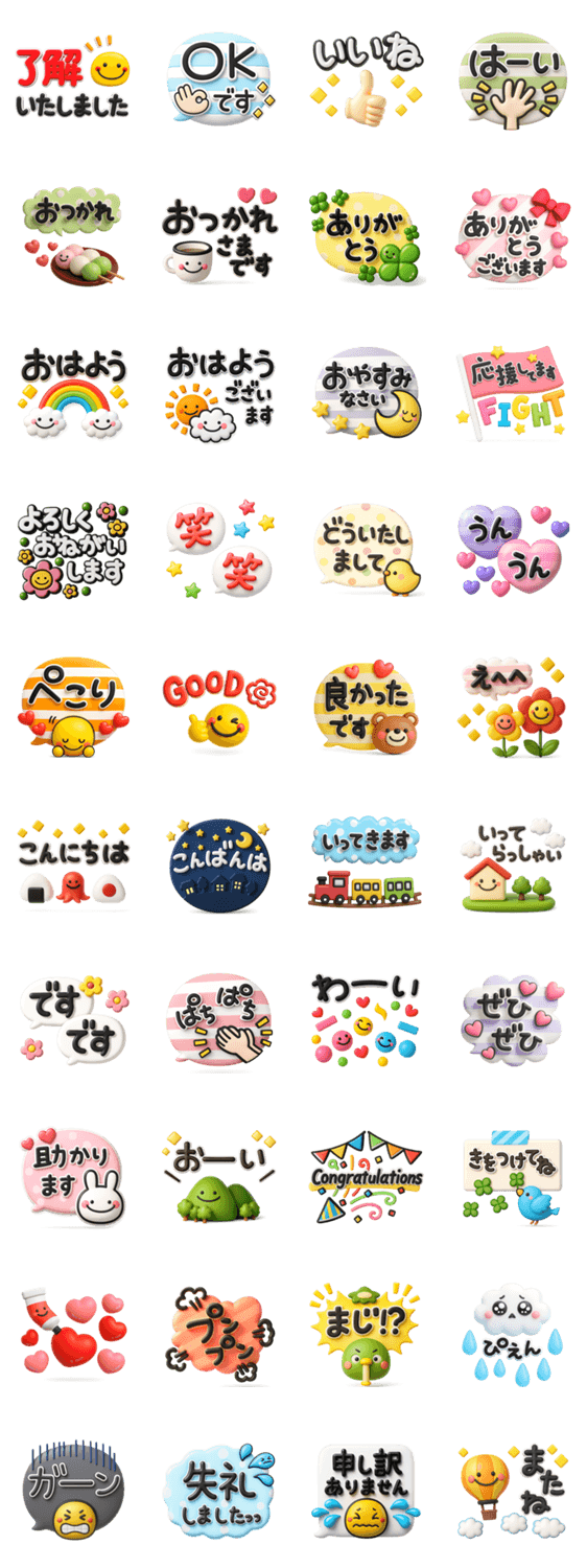 | スタンプ説明 | お仕事やママ友など誰にでもとっさに使える便利な丁寧語でか文字スタンプです。内容も厳選しており春夏秋冬年中使える初心者にもおすすめスタンプです。 |