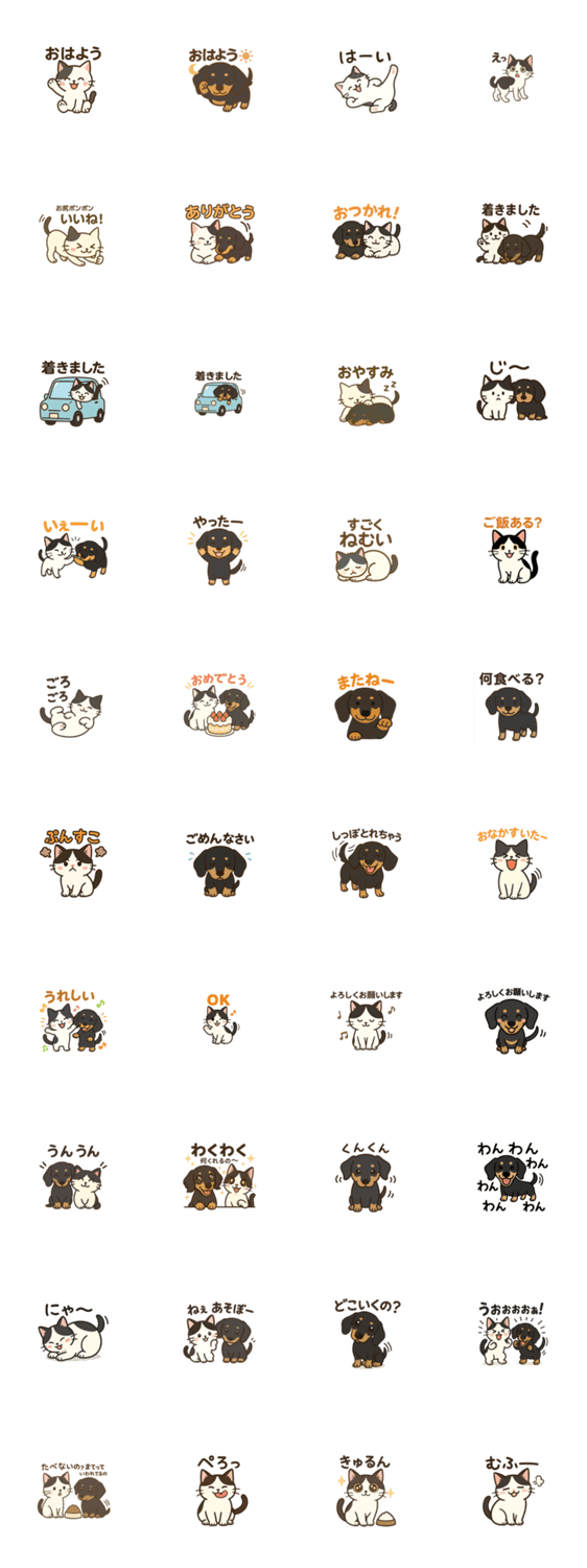 猫と犬のかわいい日常を描いたスタンプです。親しい人との会話にどうぞ!
