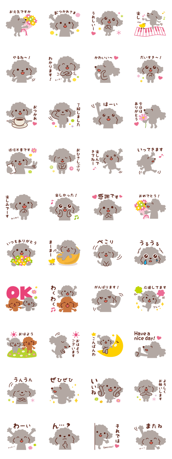 モフモフな毛並みのキュートなトイプードル。 ハッピーな毎日の思いを伝えるプードルのスタンプです。