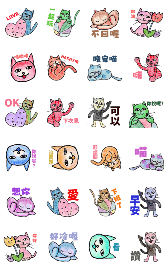 | スタンプ説明 | This cat comes in every shade imaginable playful, colorful, and full of personality! |
