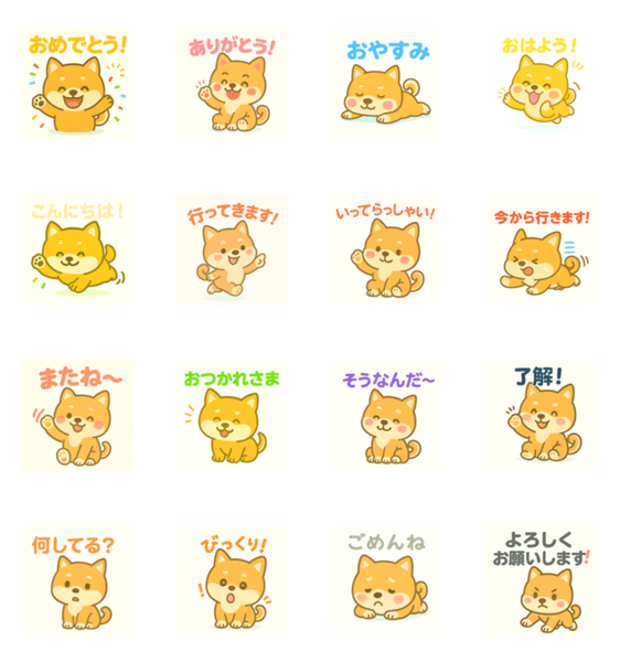 表情豊かな柴犬があなたの会話を楽しく彩ります。「行ってきます」「了解!」「またね~」など癒しのフレーズが満載!