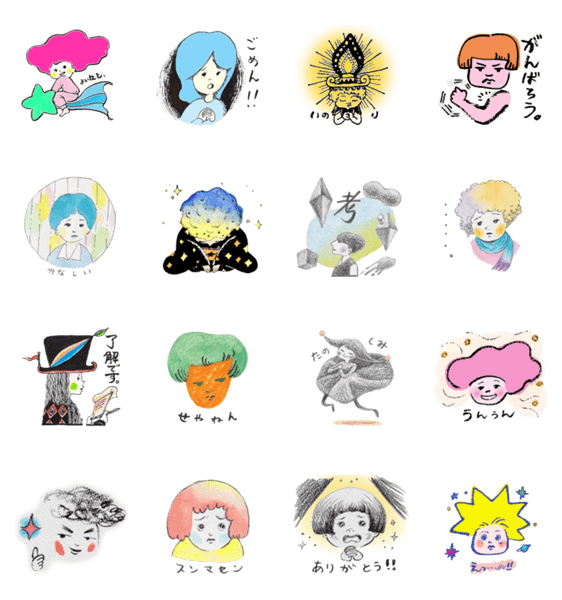 絵描き佐伯朋子による、心の機微をなんとか表情でも伝えられたらというスタンプ。