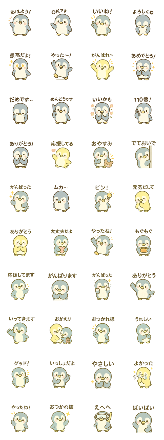 キタコー作。ペンギンのしらたまの日常会話スタンプです。