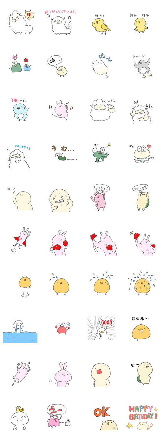パステルカラーの森のどうぶつさんたちは自由気まま!マッチョでつよいウサギさんやアルパカさん、可愛い鳥さんやカメさん、たまに未確認生物もいるよ!