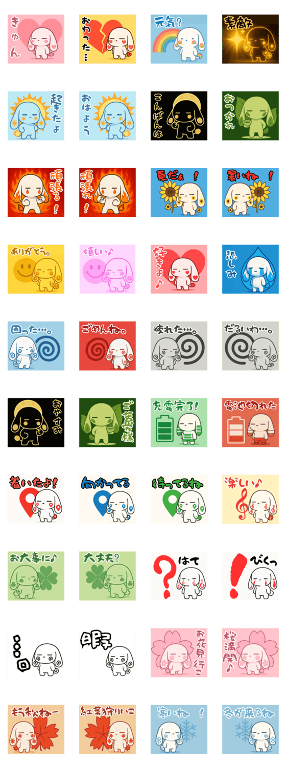 | スタンプ説明 | 「えもあにまる」の「えもうさ」無表情のうさぎさんが感情をマークで表現してコミュニュケーションをとってくれます❤︎ |