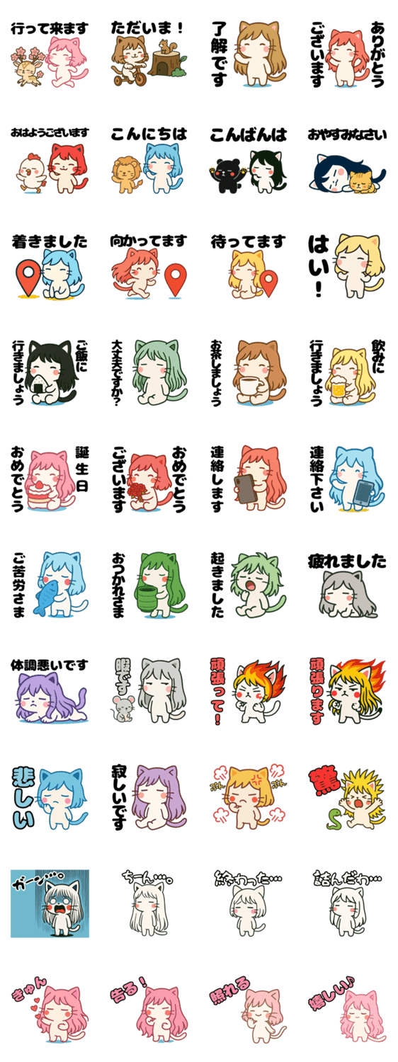 | スタンプ説明 | 【敬語】カラフルな髪の毛を生やした「ねっ娘」達と楽しくコミュニケーションを取りましょう! |