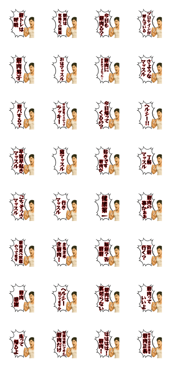 憎めない脳筋お兄さんスタンプです。筋肉好きの人は必須アイテムです。/使いやすい/おもしろい/男/ユニーク/癖のある